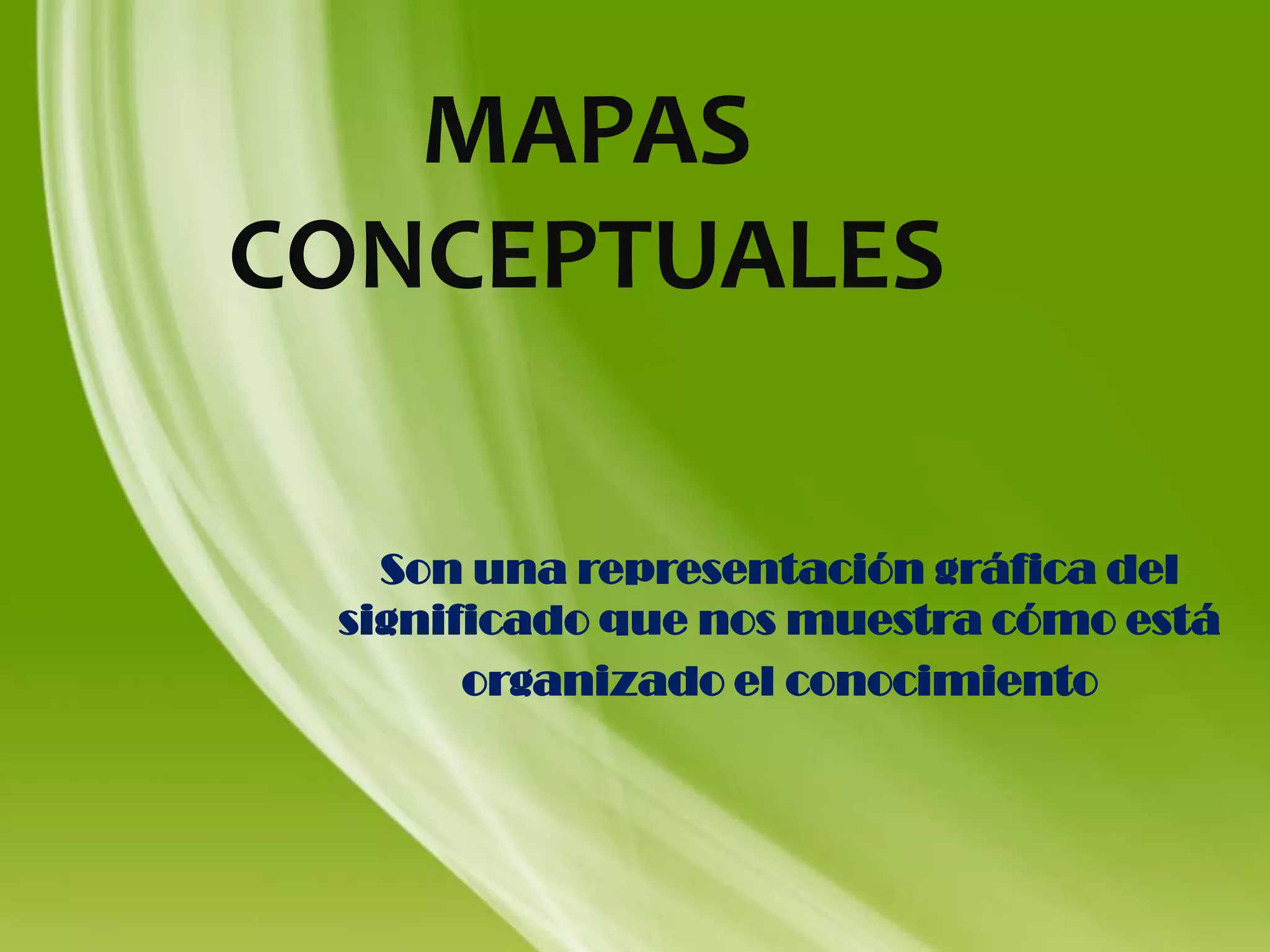 Los mapas conceptuales son representaciones gráficas que muestran cómo está organizado el conocimiento. Deben ser concisos, simples y vistosos para llamar la atención y ser fácilmente comprensibles. Muestran conceptos mediante óvalos y relaciones mediante líneas y flechas, y pueden incluir estructuras verticales u horizontales, así como diferentes tipos de relaciones como secuenciales, causales o comparativas.