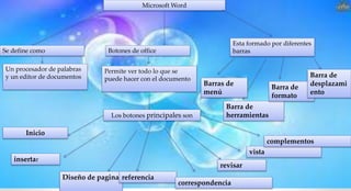 Este documento proporciona una breve introducción a Microsoft Word, Excel y PowerPoint. Resume que Word es un procesador de texto con barras de menús y herramientas que permiten formato y edición de documentos. Excel se describe como una hoja de cálculo electrónica con fórmulas, datos y funciones. Finalmente, PowerPoint se presenta como una aplicación para crear presentaciones multimedia profesionales con texto, gráficos y video.