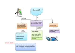 El documento presenta diferentes técnicas de evaluación y recolección de información como la observación, encuesta, pruebas objetivas, mapas mentales, ensayos, estudios de caso, indicadores de evaluación, discusión en grupo, lista de cotejo y rúbricas de evaluación.