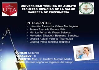 Este documento describe los huesos de la cabeza, el cuello, la cara, el tórax y el abdomen. En la cabeza se describen el cráneo, que incluye el frontal, esfenoides, etmoides, temporal, parietal, occipital y hioides. En el cuello se describen las vértebras cervicales, el manubrio del esternón, las clavículas y las costillas. En la cara se describen catorce huesos incluyendo el maxilar superior, palatinos, cigomáticos, nasales, cornetes