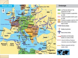 El documento resume los enormes gastos militares de las potencias durante la Segunda Guerra Mundial, con Estados Unidos gastando más de $340 mil millones, Alemania $272 mil millones y la Unión Soviética casi $200 mil millones. También describe los horribles efectos de las bombas atómicas lanzadas sobre Hiroshima y Nagasaki, y las conferencias entre los aliados sobre el reparto de Europa y la necesidad de derrotar a Japón.