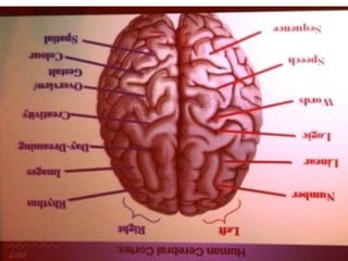 El documento resume los principales conceptos de los mapas mentales. Explica que desarrollar solo el lado lineal del cerebro es como desarrollar solo la mitad del cuerpo, y que los grandes pensadores usan ambos lados. También describe algunos beneficios del consumo de pescado para la salud mental y las conexiones neuronales creadas por la meditación. Finalmente, resalta la importancia de usar ambos hemisferios cerebrales para aumentar la creatividad y productividad.