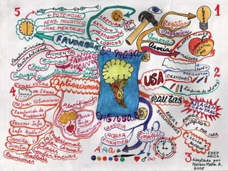 El documento proporciona información sobre los mapas mentales. Explica que los mapas mentales son una estrategia gráfica para organizar y representar el pensamiento que aprovecha la capacidad asociativa del cerebro. Describe que los mapas mentales utilizan palabras e imágenes para procesar información con ambos hemisferios cerebrales y mejorar la comprensión y retención del conocimiento. También destaca algunas ventajas del uso de mapas mentales como herramienta educativa.