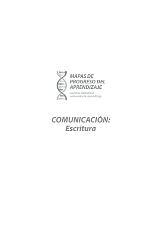 Este documento presenta el Mapa de Progreso de Escritura, el cual describe la evolución de la competencia escritora de los estudiantes a lo largo de la educación básica. El mapa considera dos aspectos: 1) la construcción de significados mediante la organización y desarrollo coherente de ideas, y 2) el uso de convenciones del lenguaje escrito como ortografía y puntuación. El mapa describe estos aspectos en niveles que van desde inicial hasta avanzado, mostrando la progresión esperada en la escritura de