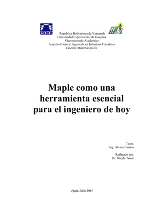 Maple es un software matemático que permite realizar cálculos simbólicos, numéricos y gráficos como derivadas parciales, integrales dobles e integrales triples. Es una herramienta esencial para ingenieros ya que facilita explorar distintas posibilidades matemáticas de forma más experimental.