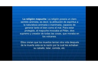 Los mapuches tenían una economía basada principalmente en la ganadería de ganado menor como ovejas y cabras. También practicaban la agricultura en menor medida, cultivando cereales, y la recolección de frutos silvestres. Cazaban liebres, perdices y otros animales. Intercambiaban productos y ganado con otros grupos.