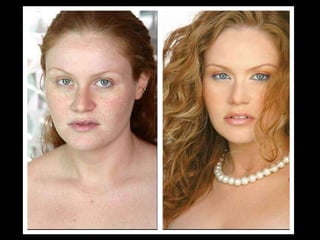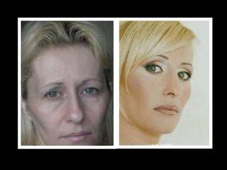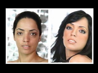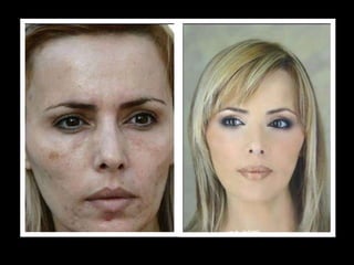 El documento habla sobre el maquillaje y su efecto en la apariencia. Brevemente menciona a una vicepresidenta del gobierno antes y después de aplicarse maquillaje. No proporciona más detalles sobre el contenido o propósito del documento.