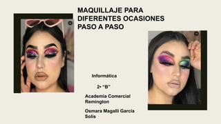 El documento proporciona una guía detallada sobre diferentes técnicas de maquillaje para diversas ocasiones, incluyendo instrucciones paso a paso y consejos sobre el uso de brochas. Se abordan estilos de maquillaje como el ahumado, glam, y colorido, así como la correcta aplicación de contornos según la forma del rostro. Además, se detalla el uso adecuado de diferentes tipos de brochas para lograr acabados profesionales.