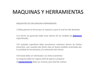 REQUISITOS DE UNA MAUINA HERRAMIENTA