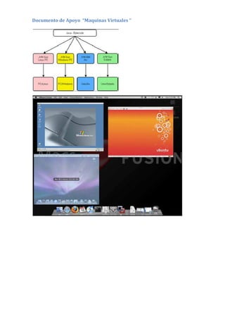 Las máquinas virtuales permiten ejecutar sistemas operativos de forma aislada sin necesidad de formatear o cambiar de equipo. Una máquina virtual es un programa que simula un entorno computacional completo, permitiendo instalar otro sistema operativo de manera independiente. El documento explica cómo crear una máquina virtual, configurarla e instalar un sistema operativo invitado para probarlo de manera aislada sin afectar al sistema operativo anfitrión.