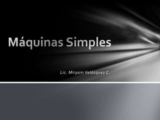 Este documento describe las máquinas simples, que son aparatos que transforman o compensan un peso para realizar un trabajo con una fuerza menor. Enumera las máquinas simples como la rueda, la polea, la palanca, el plano inclinado y la cuña. Explica que las máquinas simples cumplen con la conservación de la energía y sirven para transformar las características del trabajo mecánico sin crear ni destruir energía. Luego procede a describir específicamente la polea, indicando que sirve para elevar pesos a