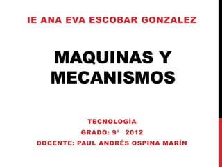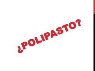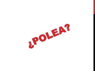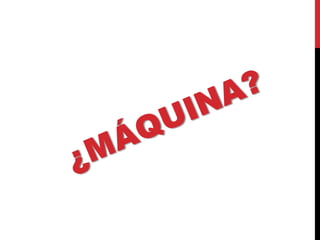 Este documento describe diferentes tipos de máquinas y mecanismos, incluyendo palancas, poleas, engranajes, correas y cadenas. Explica cómo las palancas se clasifican en tres órdenes dependiendo de la posición del punto de apoyo y las fuerzas involucradas. También describe cómo las poleas y los polipastos pueden usarse para dividir una fuerza. Finalmente, explica varios mecanismos de transmisión como engranajes, correas, cadenas y tornillos sin fin, así como cómo estos se pueden combinar en