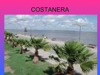 El documento describe varias escenas de la costa y playa, incluyendo atardeceres, una fiesta en la playa, personas posando y aves costeras. También menciona lugares como la Bahía del Sol, la Laguna Mar Chiquita y el Hotel Viena.