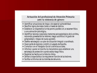 El documento trata sobre la conducta médica y los problemas de género. Explica que ha habido cambios sociales que han llevado a la incorporación de la mujer en la educación y el mercado laboral, así como nuevas estructuras familiares. También discute los roles de género estereotipados y la agresividad como un comportamiento aprendido. Finalmente, analiza la violencia de género y el ciclo de la violencia, identificando características del agresor y la víctima.