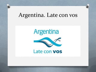 La ponencia trata sobre el concepto de Marca País. Explica que es un concepto híbrido entre el marketing y el derecho que no se relaciona directamente con la propiedad industrial. Presenta las marcas de diferentes países y define a la Marca País como un compendio de submarcas que realizan acciones comunicativas para posicionar la imagen del país. Finalmente, concluye que una buena marca país es un activo que respalda la posición internacional de un Estado en diferentes ámbitos.