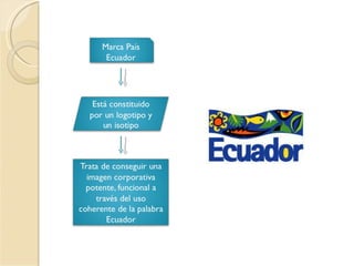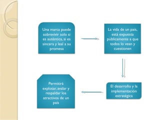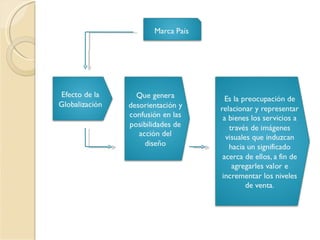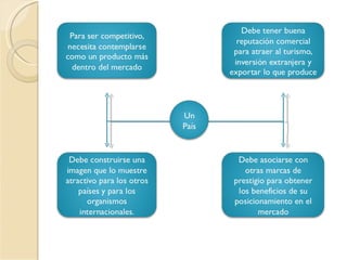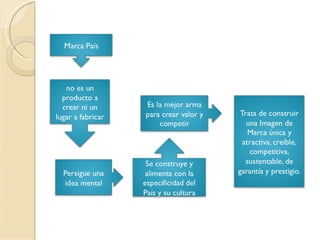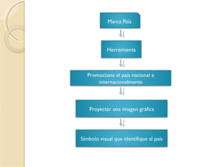 Este documento trata brevemente sobre la marca país. Define la marca país como la imagen o reputación que un país proyecta hacia el exterior a través de factores como su cultura, política, economía y estilo de vida. Además, incluye una bibliografía de cuatro fuentes en línea que brindan más información sobre el concepto de marca país.