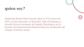La persona disfruta vivir la vida al máximo capturando fotos y viajando. Le gusta explorar nuevas perspectivas y mantenerse positiva. Sus pasiones incluyen la cocina, especialmente los postres, y le gusta el sushi y las pupusas. Es amante de los animales, particularmente los perros, y disfruta maquillarse como forma de expresión. Su meta es aprovechar la vida sin amargarse por cosas insignificantes.