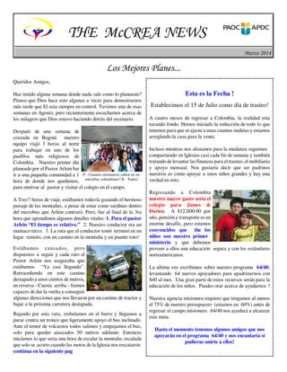 El equipo misionero tuvo una semana difícil en Colombia, con viajes largos y complicados para llegar a una comunidad remota. A pesar de enfrentar obstáculos como caminos en mal estado y un puente roto, continuaron con su misión. Aunque su visita a la escuela local no resultó como esperaban, posteriormente escucharon que su visita había inspirado a algunos estudiantes a asistir a la iglesia. Más tarde, cuando intentaban regresar a Bogotá, quedaron atrapados debido a protestas, pero finalmente pudieron salir de la ciudad