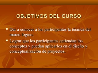 Este documento presenta una introducción al enfoque del marco lógico para el diseño y gestión de proyectos. Explica que el marco lógico es una herramienta metodológica ampliamente utilizada que permite planificar de manera estructurada mediante el análisis de involucrados, problemas, objetivos y alternativas. Finalmente, introduce la matriz de marco lógico como instrumento clave para conceptualizar, diseñar, ejecutar y evaluar un proyecto a lo largo de todo su ciclo.