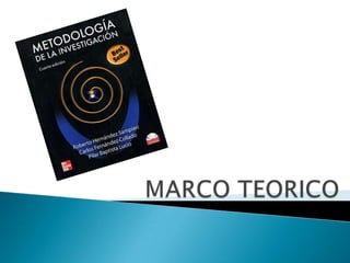 El documento describe las etapas de elaboración de un marco teórico, incluyendo la revisión de literatura para identificar teorías y estudios relevantes, la extracción y recopilación de información clave, y la construcción del marco teórico basado en la integración de la literatura. El marco teórico sustenta teóricamente el estudio y ayuda a guiar la investigación.