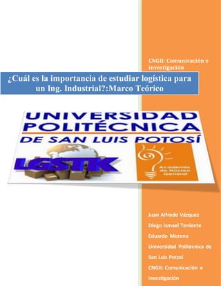 Este documento presenta un marco teórico sobre la importancia de estudiar logística para ingenieros industriales. Explica conceptos clave como logística, ingeniería industrial y productividad. Analiza artículos previos sobre la formación de ingenieros y las tareas que realizan. También compara dos artículos sobre logística, describiendo temas comunes como inventarios y atención a clientes, así como diferencias en su tratamiento de subsistemas logísticos. El documento concluye que la perspectiva de un artículo en particular