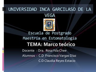 El documento presenta información sobre el marco teórico en investigaciones. Explica que el marco teórico provee ideas y teorías previas que guían el trabajo del investigador y le dan un marco ordenado. También describe las funciones del marco teórico como orientar la investigación, prevenir errores, e inspirar nuevas áreas de estudio. Finalmente, detalla los pasos para elaborar un marco teórico como revisar literatura existente y adoptar o desarrollar una perspectiva teórica.