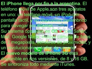 Se presentan tres nuevos dispositivos tecnológicos: un Ultra Mobile PC con procesador Intel Core de 1.33 GHz y 1 GB de RAM, con un precio de $9,300; el iPhone 3G de Apple con cámara de 2 megapixeles y almacenamiento de 8-16 GB; y un reproductor portátil con pantalla de 2.5 pulgadas, cámara VGA, y 1 GB de almacenamiento interno expandible. También se ofrece una computadora HP con procesador Intel Pentium 4 de 3.2 GHz y 512 MB de RAM, dis