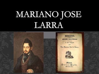 Este documento resume la vida y obra de Mariano José de Larra. Brevemente describe su infancia y educación itinerante, su frustrada vida sentimental y su carrera como periodista, donde se hizo famoso por sus artículos de costumbres publicados en revistas como El Duende Satírico y El Pobrecito Hablador. Estos artículos tenían una estructura común y criticaban las costumbres de la sociedad española de la época con el fin de promover su modernización.
