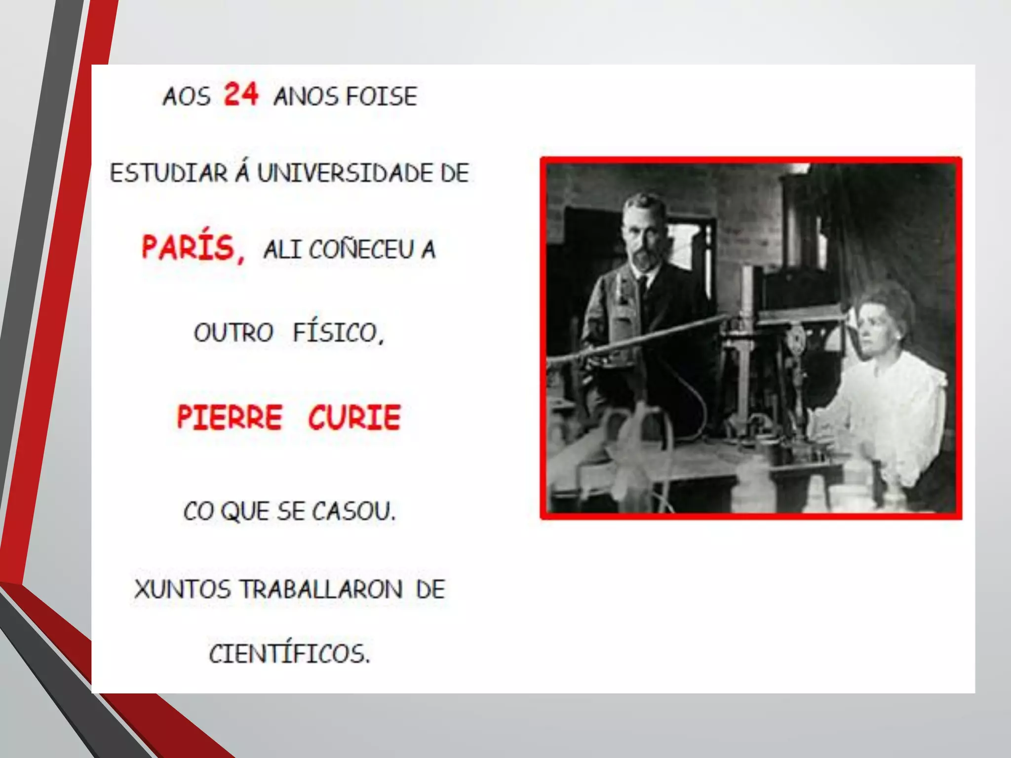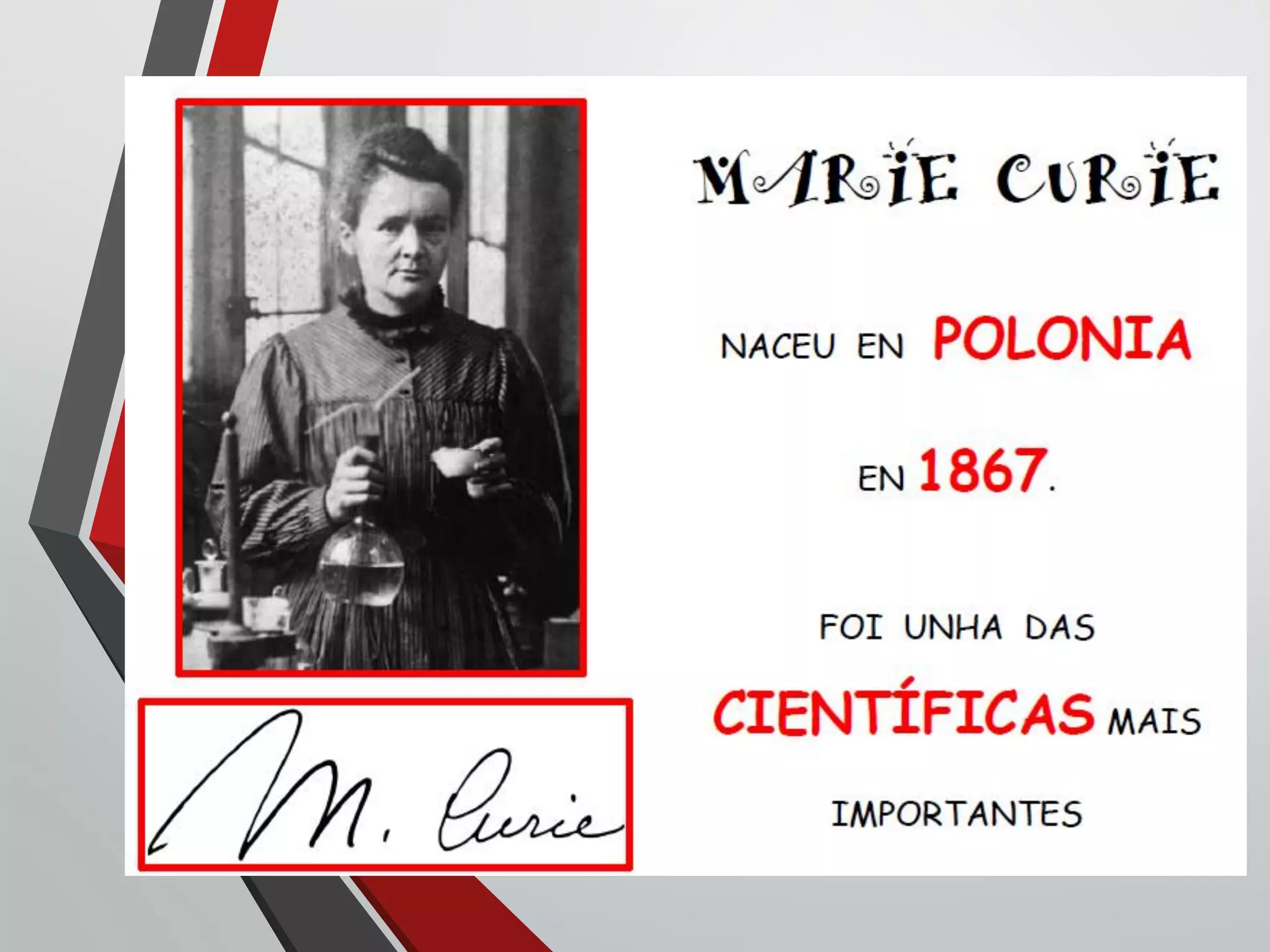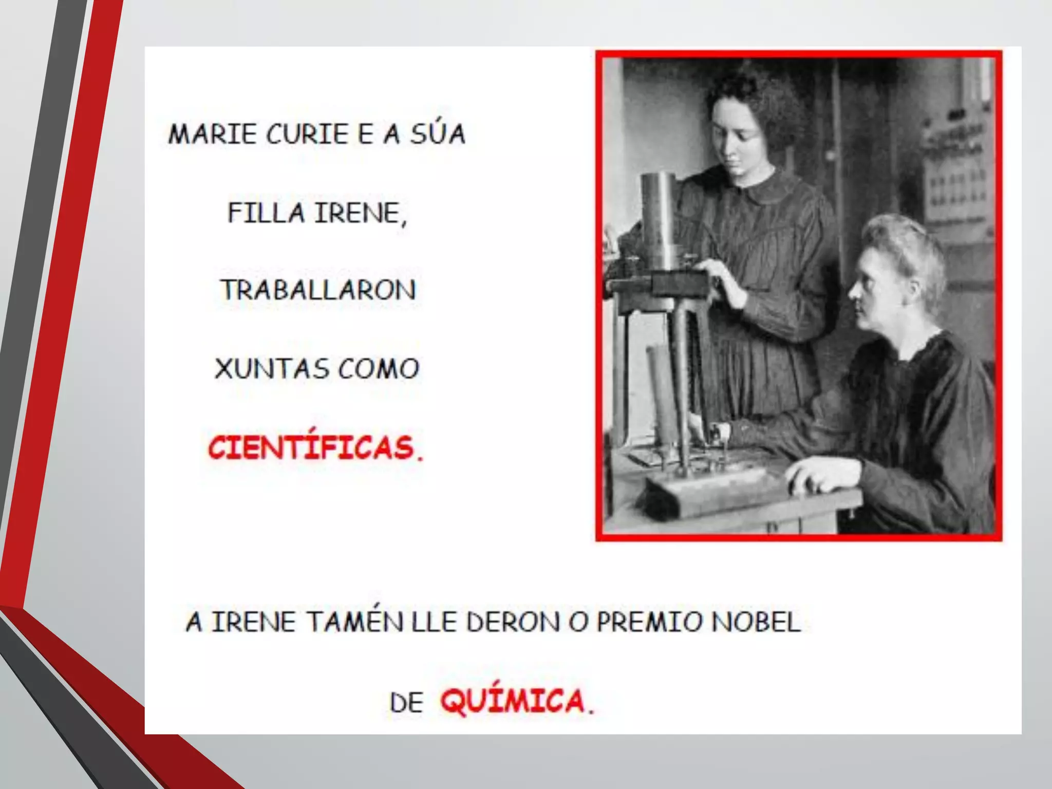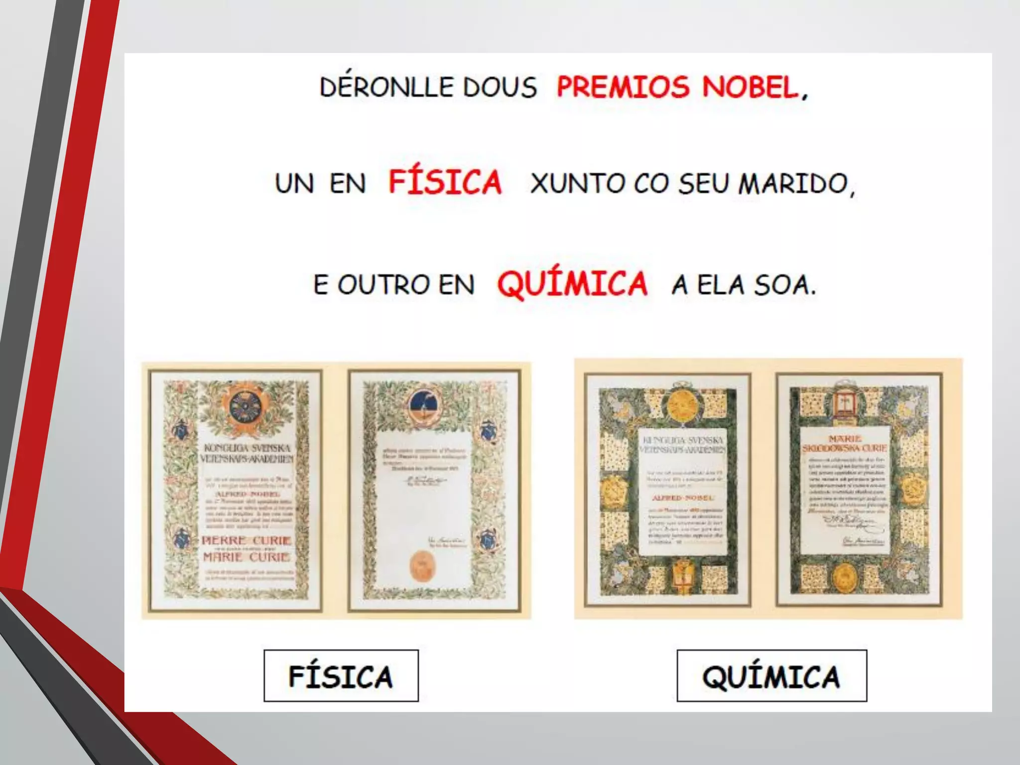 Marie Curie y su esposo Pierre Curie descubrieron dos elementos, el radio y el polonio. Le pusieron "radio" al elemento debido a la gran cantidad de radiación que emitía, y "polonio" en honor al país de origen de Marie, Polonia.