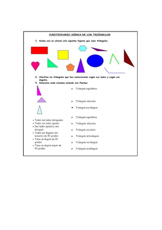 El documento resume las propiedades básicas de la circunferencia y el círculo. Define una circunferencia como la figura geométrica cuyos puntos están a la misma distancia de un punto central llamado centro. Explica los tipos de rectas que pueden cortar o tocar una circunferencia. Luego describe los elementos clave de una circunferencia como el radio, cuerda y diámetro. Finalmente, cubre conceptos como ángulos centrales, inscritos y semi-inscritos, así como la relación entre ángulos y ar
