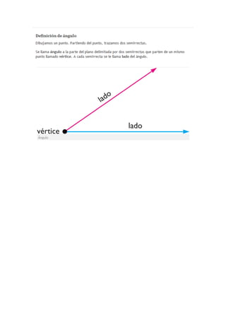 El documento resume las propiedades básicas de la circunferencia y el círculo. Define una circunferencia como la figura geométrica cuyos puntos están a la misma distancia de un punto central llamado centro. Explica los tipos de rectas que pueden cortar o tocar una circunferencia. Luego describe los elementos clave de una circunferencia como el radio, cuerda y diámetro. Finalmente, cubre conceptos como ángulos centrales, inscritos y semi-inscritos, así como la relación entre ángulos y ar