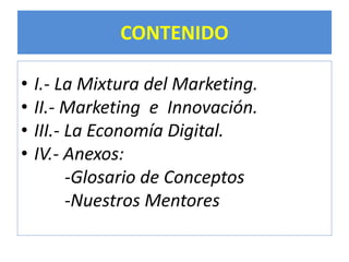 Este documento presenta los conceptos fundamentales del marketing. Explica que el marketing debe orientarse a satisfacer las necesidades de los clientes para crear valor para ambas partes. Describe los elementos clásicos de la mezcla de marketing (producto, precio, plaza y promoción) y cómo estas han evolucionado para enfocarse en la experiencia del cliente y el modelo de negocio. Finalmente, resalta la necesidad de que el marketing se enfoque en escuchar al cliente y comunicar el valor que se les ofrece.