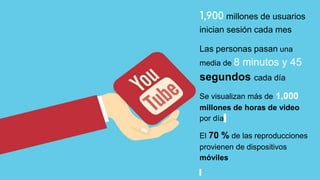 El documento destaca la creciente importancia del video en las plataformas digitales, con 1,900 millones de usuarios mensuales y más de 1,000 millones de horas de video vistas diariamente. Los videos son compartidos con una frecuencia notable, siendo 89.5 veces más virales que otros formatos, y el 90% de los usuarios consideran que los videos de productos son útiles para decisiones de compra. Además, los videos generan más interacciones, siendo los videos en directo mucho más efectivos en cuanto a reacciones y comentarios.