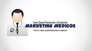 El documento aborda estrategias de marketing para médicos, destacando la importancia de combinar la tradición profesional con técnicas modernas de publicidad. Se menciona un ejemplo de campaña publicitaria para un cardiólogo en Miami, que incluye medios como radio, televisión y presencia online. Además, se enumeran los elementos clave que deben considerarse al crear anuncios para médicos, basándose en campañas publicitarias exitosas.