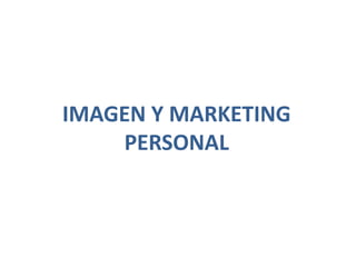 El documento habla sobre la importancia de la imagen personal y el marketing personal. Resalta que la imagen personal comienza con cómo nos vemos a nosotros mismos y debemos conocer nuestras fortalezas, metas, talentos y debilidades. También enfatiza cuidar nuestra imagen en redes sociales y durante entrevistas de trabajo, vistiéndonos de manera apropiada y proyectando una actitud positiva.