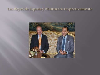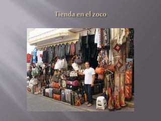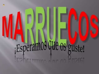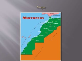 Marruecos se encuentra en el noroeste de África, limitando con Argelia, Mauritania y España. Tiene una rica historia que data desde el Neolítico y una población diversa compuesta de bereberes, árabes y otros grupos. El territorio marroquí incluye cuatro cordilleras montañosas y climas que van desde mediterráneo a desértico, con ríos principales como el Sebú y el Muluya.