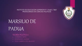 Marsilio de Padua fue un filósofo y pensador político del siglo XIV que defendió la supremacía del poder político sobre el espiritual a través de su obra más destacada, 'Defensor Pacis'. En esta obra, argumenta sobre la importancia de la paz civil y establece que la fuente del poder radica en la comunidad de fieles, poniendo en duda la autoridad del papa. Su pensamiento contribuyó a la visión moderna del estado y la soberanía popular.