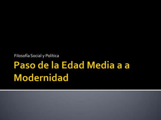Este documento resume las ideas políticas y filosóficas de Marsilio de Padua. Defendió la primacía del poder secular sobre el eclesiástico y propuso que la soberanía reside en el pueblo y no en el papa. Creía en un gobierno monárquico pero elegido por el pueblo, y que el emperador debía gobernar de forma independiente a la iglesia.