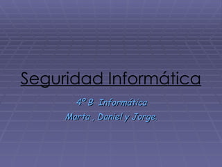 Este documento trata sobre seguridad informática. Explica conceptos como seguridad activa y pasiva, malware y tipos comunes como virus y troyanos. También describe software de seguridad popular como antivirus, cortafuegos, antiespías y antispam que ayudan a proteger sistemas de amenazas cibernéticas.
