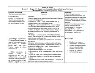 El documento describe una lección sobre números para estudiantes de segundo grado. La lección incluye actividades como crear acordeones numéricos en grupos, contar objetos fuera del salón y registrarlos, y jugar juegos numéricos como dominó y memorama. El objetivo es que los estudiantes aprendan a comparar cantidades, escribir números, y entender la correspondencia entre números y conjuntos de objetos.