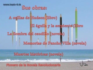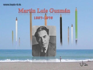 Martin Luis Guzmán fue un novelista mexicano nacido en 1887 y fallecido en 1976. Escribió varias novelas importantes sobre la Revolución Mexicana como A orillas de Hudson, El águila y la serpiente y La Sombra del caudillo. También escribió Memorias de Pancho Villa y Muertes históricas. Es considerado un pionero de la novela revolucionaria mexicana.