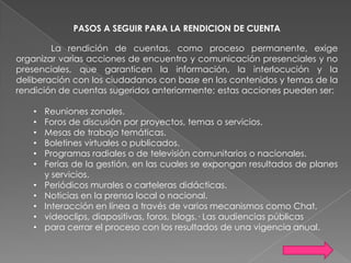 La rendición de cuentas es un proceso que requiere múltiples acciones para garantizar la comunicación efectiva entre la administración y los ciudadanos, incluyendo reuniones, foros y audiencias públicas. La unidad de gestión financiera dentro de un consejo comunal debe llevar registros contables, apoyar el desarrollo de la economía social y facilitar la evaluación de proyectos. La supervisión y el liderazgo son fundamentales en este contexto administrativo, con un énfasis en adaptarse a los cambios y desafíos del entorno empresarial.