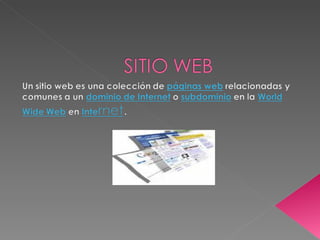 Este documento describe las redes sociales como estructuras sociales compuestas de grupos conectados por relaciones como amistad o intereses comunes. Explica que YouTube es un sitio web donde los usuarios pueden subir y compartir videos y fue creado en 2005 por ex empleados de PayPal antes de ser adquirido por Google. También define un videoblog como una galería de videos publicados cronológicamente por uno o más autores y una página web como un documento electrónico accesible a través de un navegador.