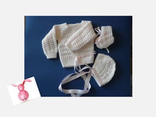 Este documento lista varios artículos de ropa infantil hechos a mano como jerseys, rebequitas y muñecos en diferentes colores y estilos. También incluye información de contacto para pedir presupuestos sin compromiso ya sea para artículos listados o para dejar su propio muñeco para vestir.
