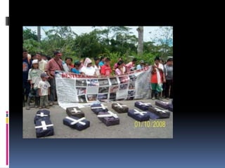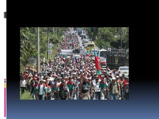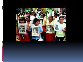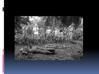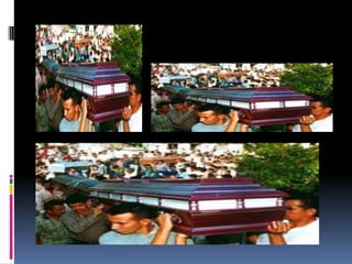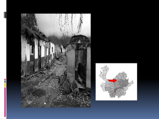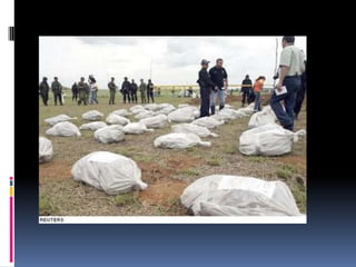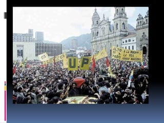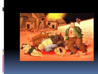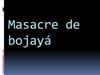El documento resume brevemente las principales masacres ocurridas en Colombia entre 1986 y 2005. Estas incluyen la masacre de Bojayá en 2002, la masacre de las bananeras en 1928, y la masacre de Mapiripán en 1996, entre otras, donde fueron asesinados civiles, indígenas, campesinos y dirigentes políticos a manos de grupos guerrilleros, paramilitares y fuerzas armadas.