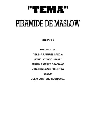 El documento presenta la teoría de las necesidades humanas de Abraham Maslow. Describe la pirámide de Maslow que jerarquiza las necesidades en 5 niveles: necesidades fisiológicas, de seguridad, sociales, de estima y de autorrealización. Explica cada nivel de necesidades y cómo se van satisfaciendo de abajo hacia arriba a medida que se cubren las necesidades inferiores.
