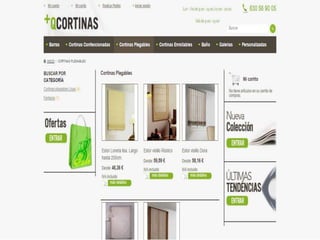 Más que cortinas es una empresa dedicada a la decoración, especializada en la producción y venta de cortinas personalizables y complementos decorativos. Su misión es ofrecer productos innovadores que se adapten a las necesidades del cliente, quienes pueden realizar sus pedidos por teléfono o internet y elegir entre varias opciones de pago. La empresa destaca la posibilidad de personalizar cortinas con fotografías escogidas por los clientes.