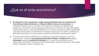 1) Un ente económico es cualquier participante de una economía de mercado que toma decisiones e influye en la economía, como empresas y familias.