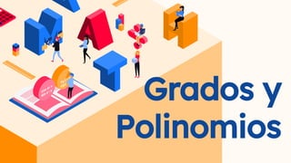 Este documento presenta varios problemas de álgebra que involucran grados y polinomios. Varios estudiantes trabajan en grupo para resolver los problemas, que incluyen calcular grados relativos, mayores grados absolutos y coeficientes de términos en polinomios. El documento muestra las soluciones de cada estudiante a los diferentes problemas planteados.