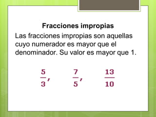 Este documento describe diferentes tipos de números. Los números reales incluyen números racionales e irracionales que pueden expresarse en forma decimal. Las fracciones dividen un objeto en partes iguales y están formadas por un numerador y denominador. La recta numérica es una línea que muestra números enteros como puntos separados uniformemente y se divide en números positivos y negativos por el cero.
